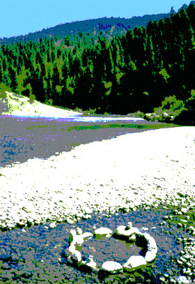 rock circle he built in a quiet pool near his camp on the Rogue River.